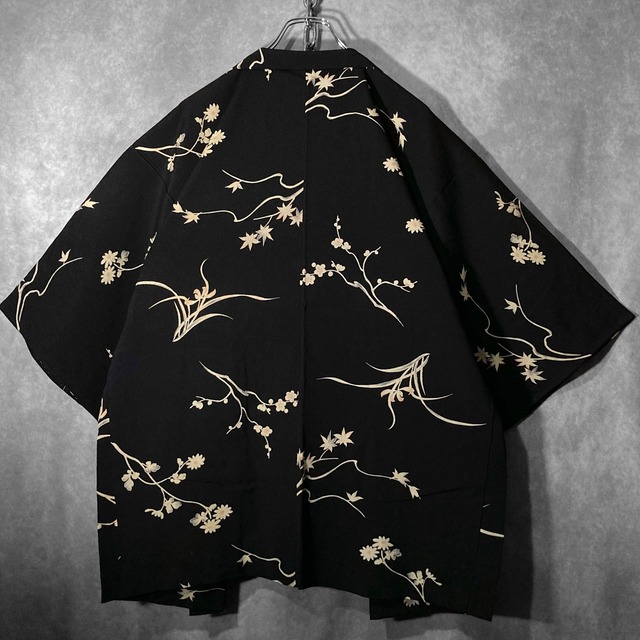 黒羽織 - 蕾 - Flower buds Glossy printing design vintage Japanese Black haori