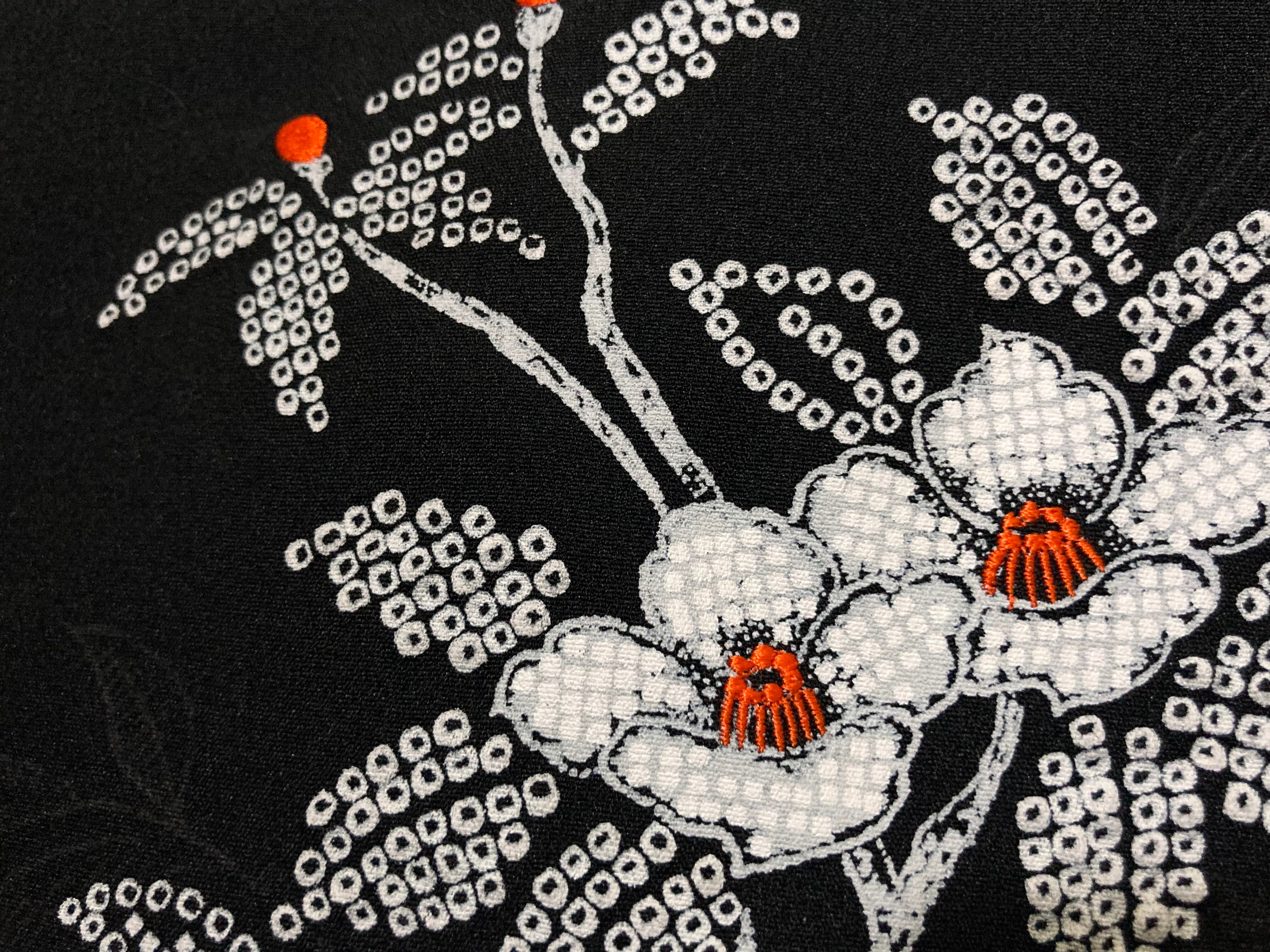 黒羽織 - 白百合 - White Lily Pattern Japanese Painting Design Vintage Black Haori