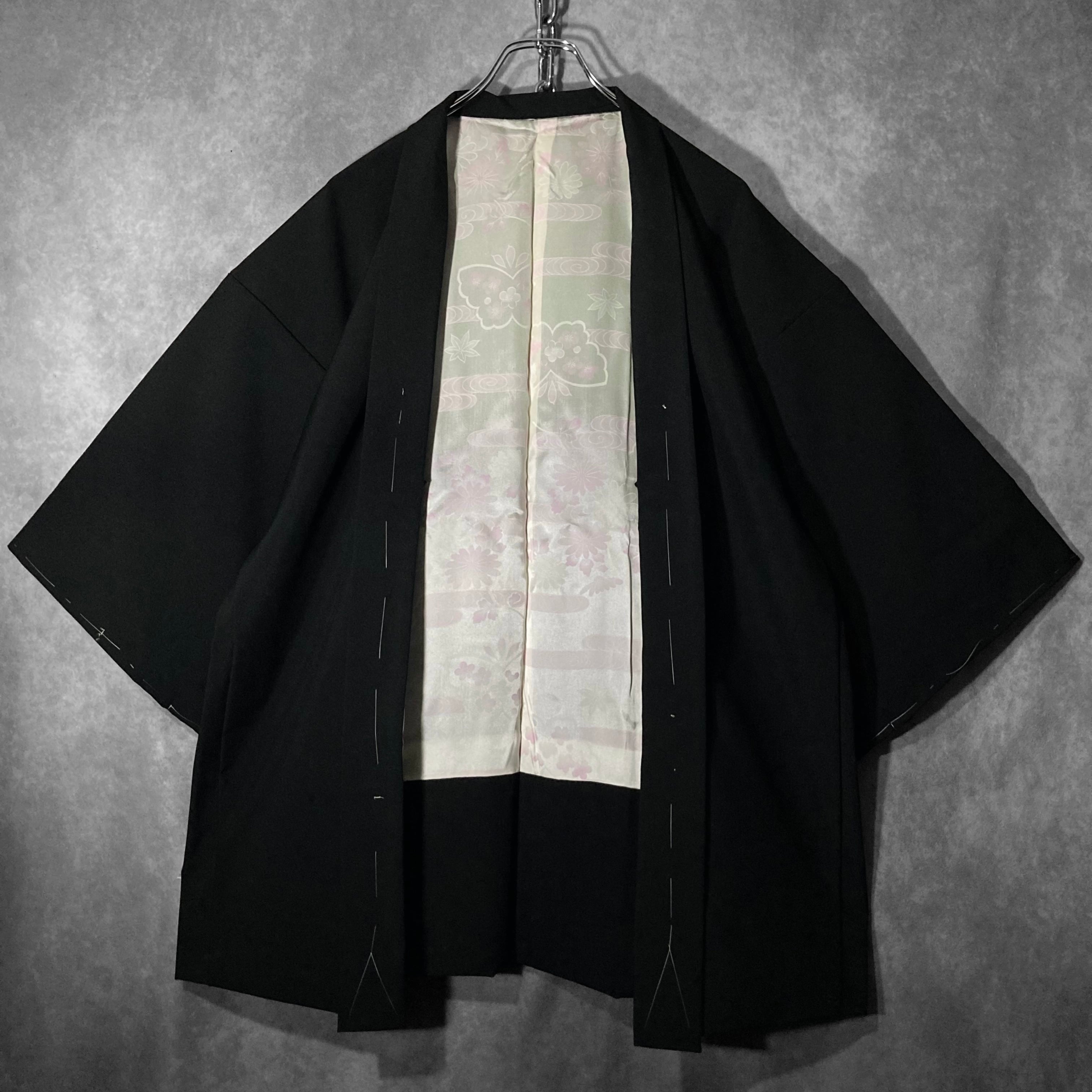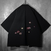 黒羽織 - 百花繚乱 - embroidery Bewitching floral pattern design Vintage Black-haori